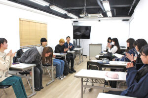 この授業を担当するTaguchi先生は自ら「劇団 球」を主宰し、