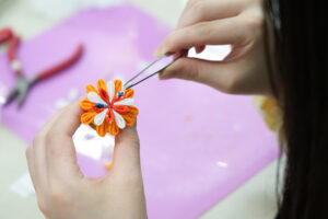 この日は日本の伝統工芸であるつまみ細工を製作していました!