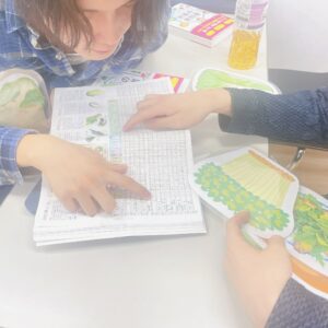 さて、今日の授業では緑黄色野菜と淡色野菜の栄養的特徴をまとめ、分類をしてみました。
