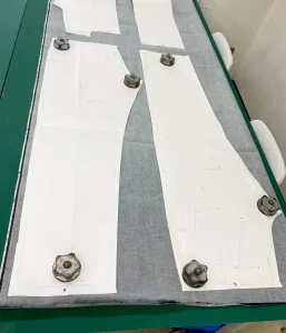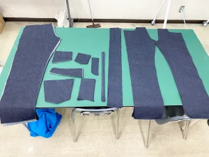 ジーンズのパーツを沢山裁断しています!