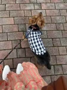 衣装製作コースの学生が犬のお洋服を製作していたので、