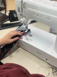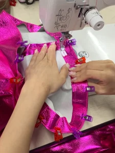 縫製が難しい生地ですが協力しながら作業を進めています😊