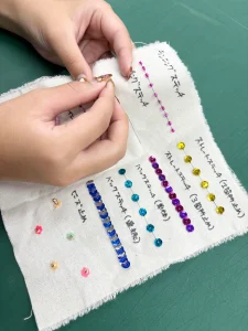 1年スタイリスト科の服飾技術実習にて、ビーズ刺繍を行いました🧵