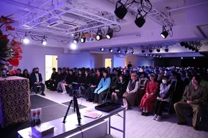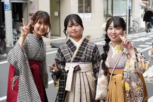 式典終了後はホールを解放して学生たちによる自由撮影のスペースに。