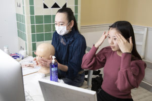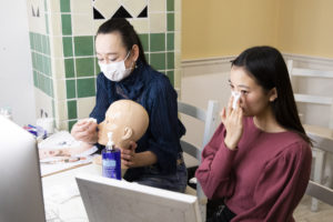 モデル科の当学生にも参加してもらい、スキンケア方法を一緒にトライ!