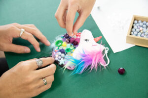 たくさんの小物やビーズから使いたいアイテムを選びます✨