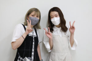 外では看板を持つ1年スタイリスト科の可愛い二人が目印ですよ〜!