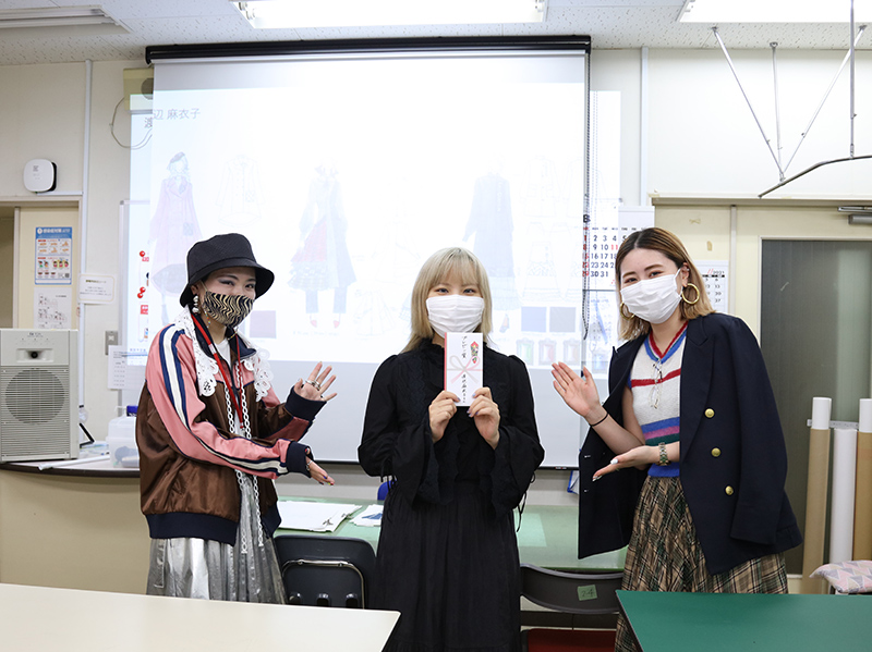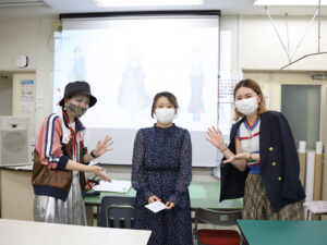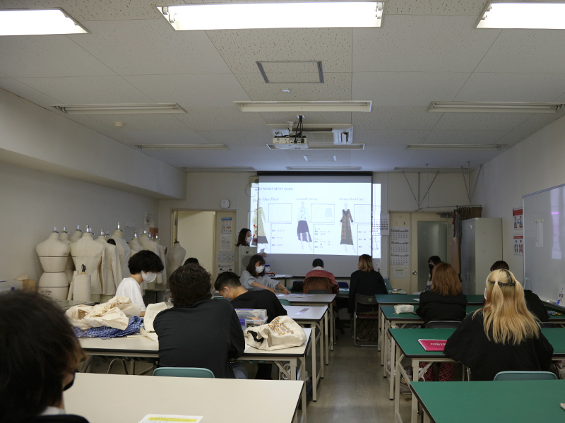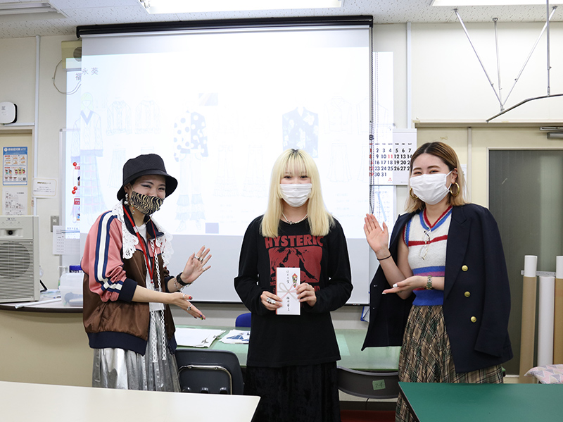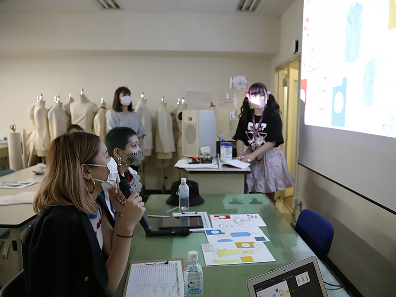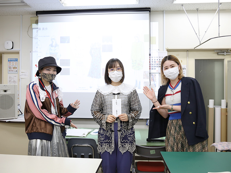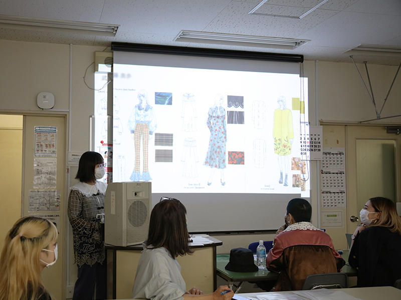 発表後にはデザイン画の書き方や生地の選び方だけでなく、実際に店舗で展開することを想定した現場目線でのアドバイスをいただき、学生たちも身が引き締まってるようでした。