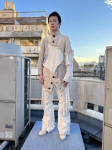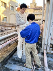 モデル科のSeinaに声をかけ、オリジナルアイテムの作品撮りを屋上で行いました。