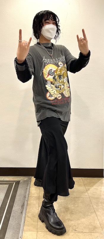 今日のテーマは「バンドTシャツだけどガーリーに🖤」です!