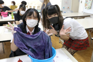 先輩たちと相談しながら、どんな色に染めるか作業を進めてゆきます...