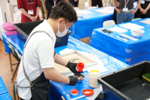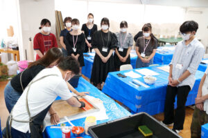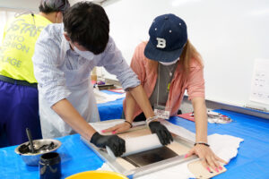 ▼ワークショップ1『シルクスクリーン プリント生地製作』