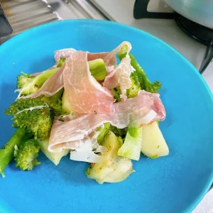 緑の野菜が苦手なユタさん(夫です)も、アヒージョにして上に生ハムでも乗せれば、