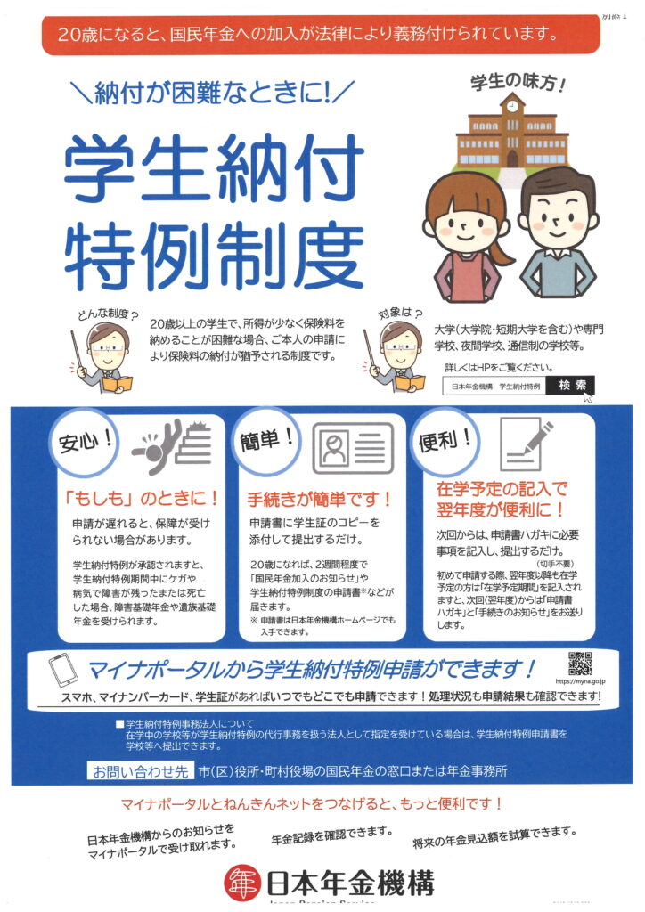 「国民年金加入のお知らせ」が届いたら「学生納付特例制度」の申請書も