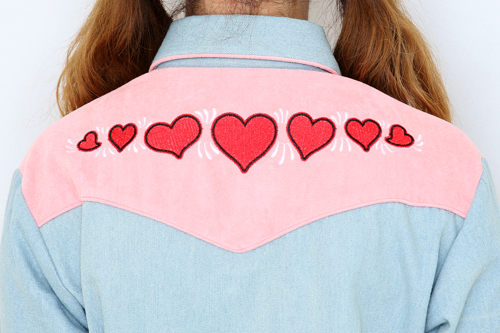 シャツの後ろの肩部分には、ハートがたくさん! バックから見てもキュートなので、注目してほしいです。