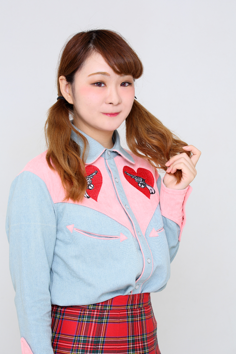 コーデに合わせて、ヘアスタイルも女の子っぽく、おさげにしてみました。いつもカラコンはつけているのですが、今日は服に合わせて“ピンク”なんですよ〜。