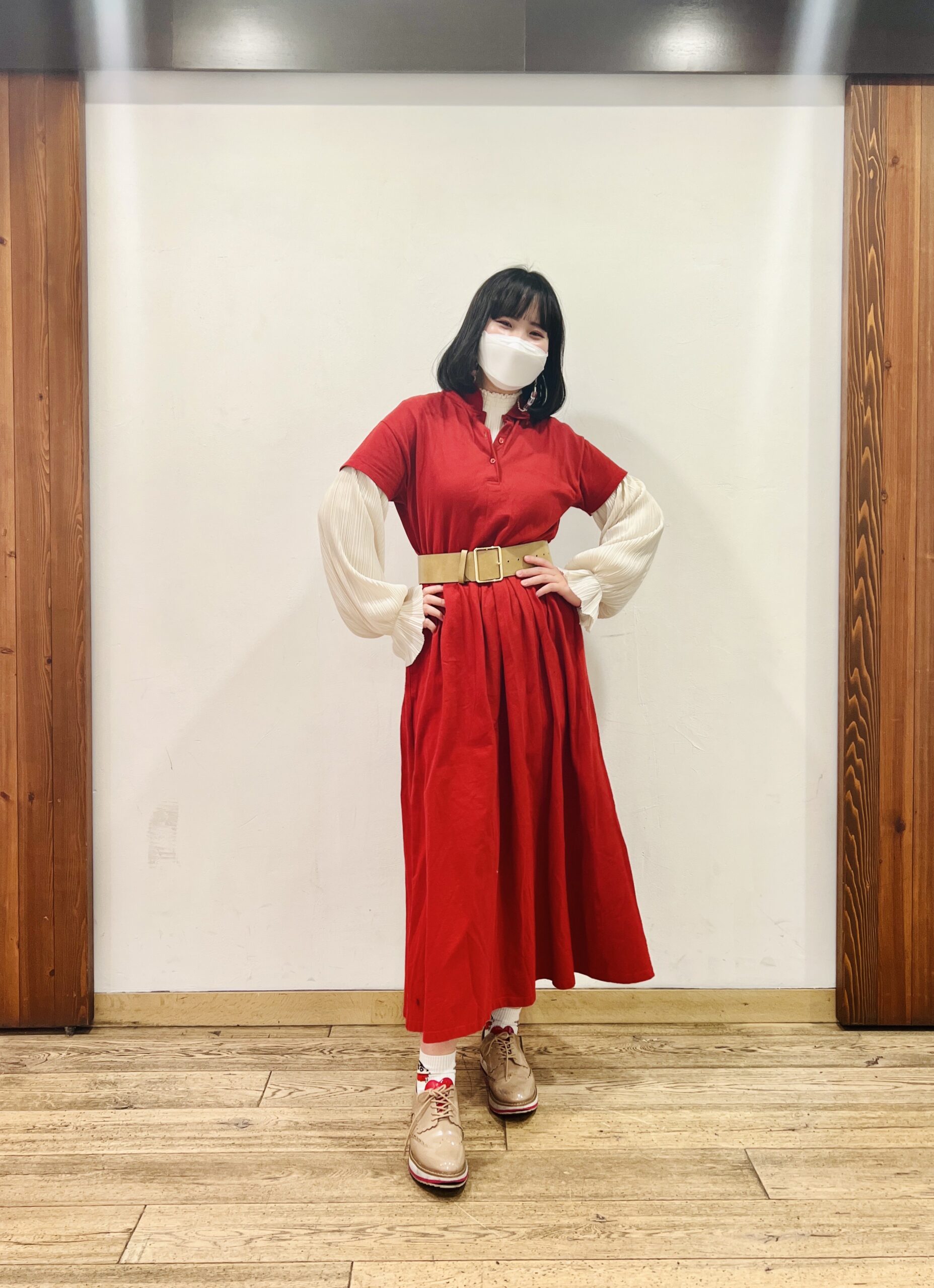 真っ赤な色が目を引くロング丈ワンピース〜!