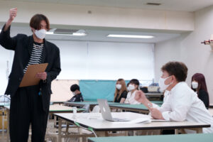 初めてのプレゼンを行うということで学生たちも緊張気味(?)。