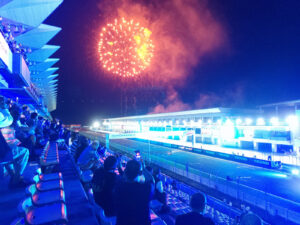 サーキット内の芝生にテントを立てるなんて、