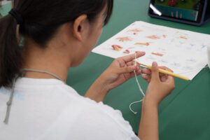 学生スタッフが基本の編み方を丁寧に教えてくれるので