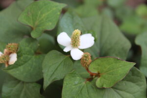 これは、玄関の横にあるドクダミの花です。周りがぼやける事で