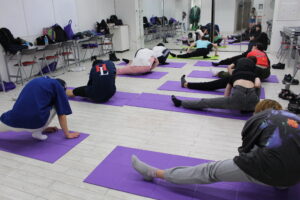 ペアでやったあとは、一人で前屈して体をほぐします。