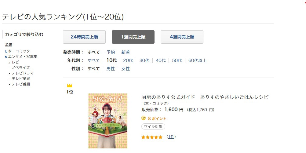 1週間売上で10代男女の売上ランキング第1位になっています!