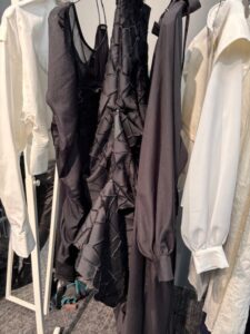 真ん中のスカートは実は隠しホックがいろんなところについていて、ロングから写真のような形にまで