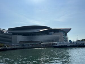 これが香港ワールドコンベンションホールの外観です。ほぼ毎週いろんなショーが行われ、世界中の人で