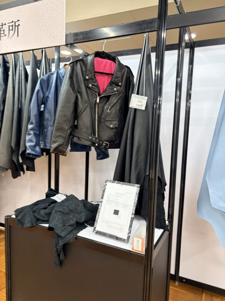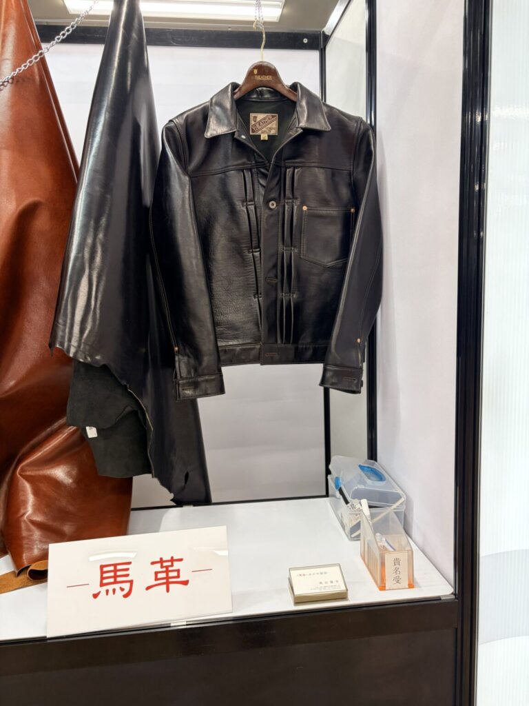 ださい。この兵庫ブースの中でコードバン(馬革)で服を作り展示して
