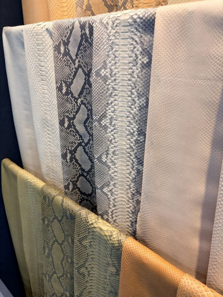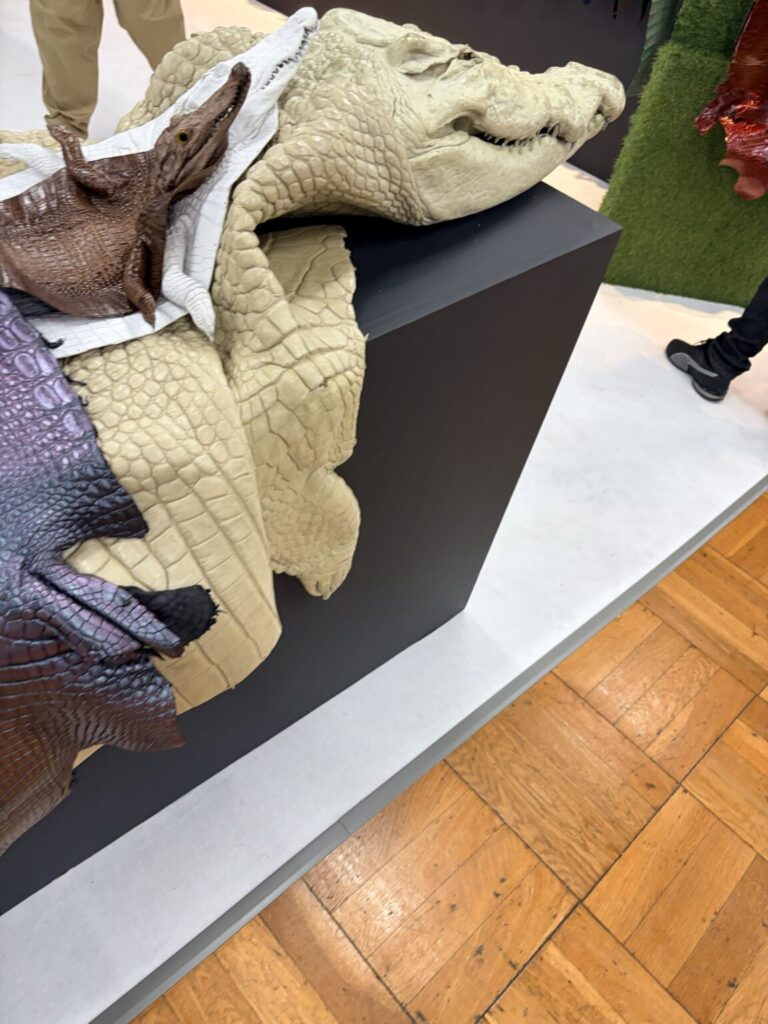 牛革だけでなく、エキゾチック・レザー専門の会社も出展していました。