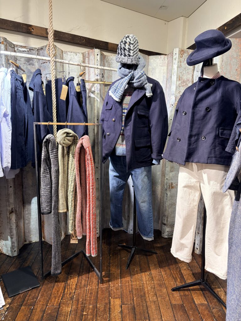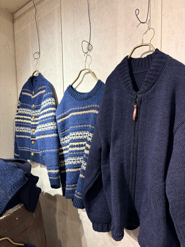 藍染はニットにも及びます。長く着続けたい商品ですね。