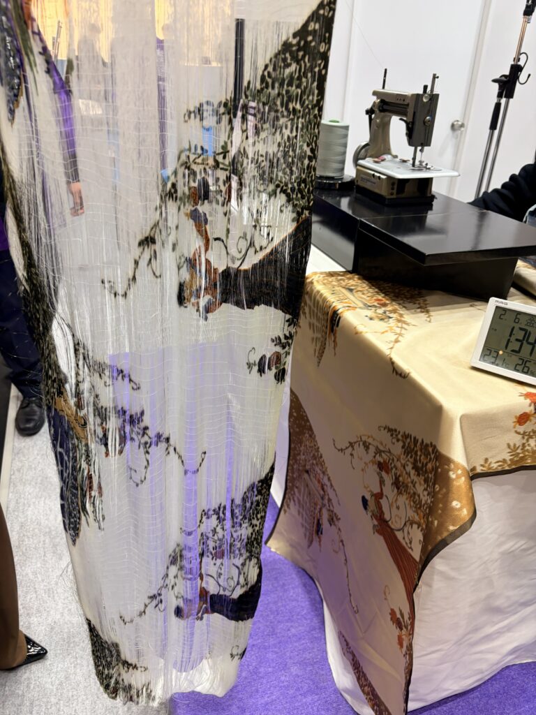 ここで実演されていたのは傘用の生地です。生地に間が空いち