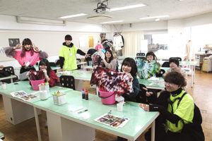 こちらはミシンを使っての帽子作り!