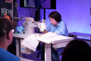 アパレル技能科衣装製作コース担当Sagi先生は、シャツの早縫い👚
