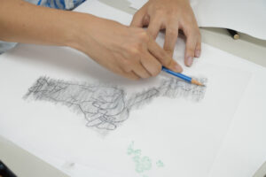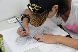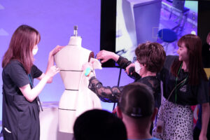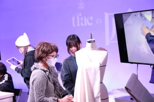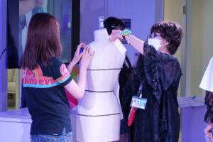 パタンナーコース担当Ribi先生は、ドレーピング(立体裁断)を実演✂️