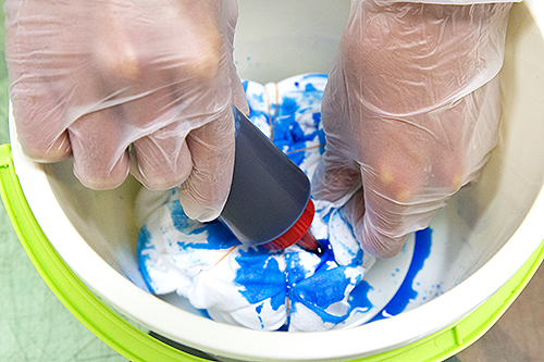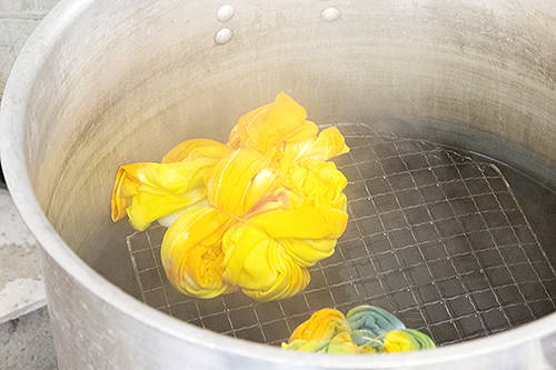 染めた後は、蒸して、洗って、乾燥して、完成で〜す!