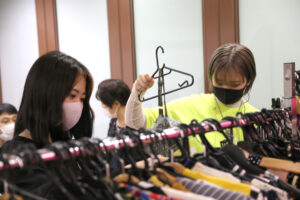 ラックにかかった沢山の洋服やアクセサリーを使ってコーディネート!
