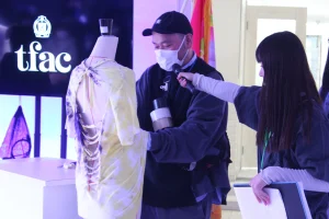 パタンナーコース担当Ribi先生はドレーピング(立体裁断)を実演