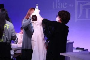 パタンナーコース担当Ribi先生はドレーピング(立体裁断)を実演✂️