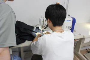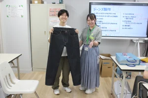 5ポケットの定番デニムパンツを縫製するコーナーです。