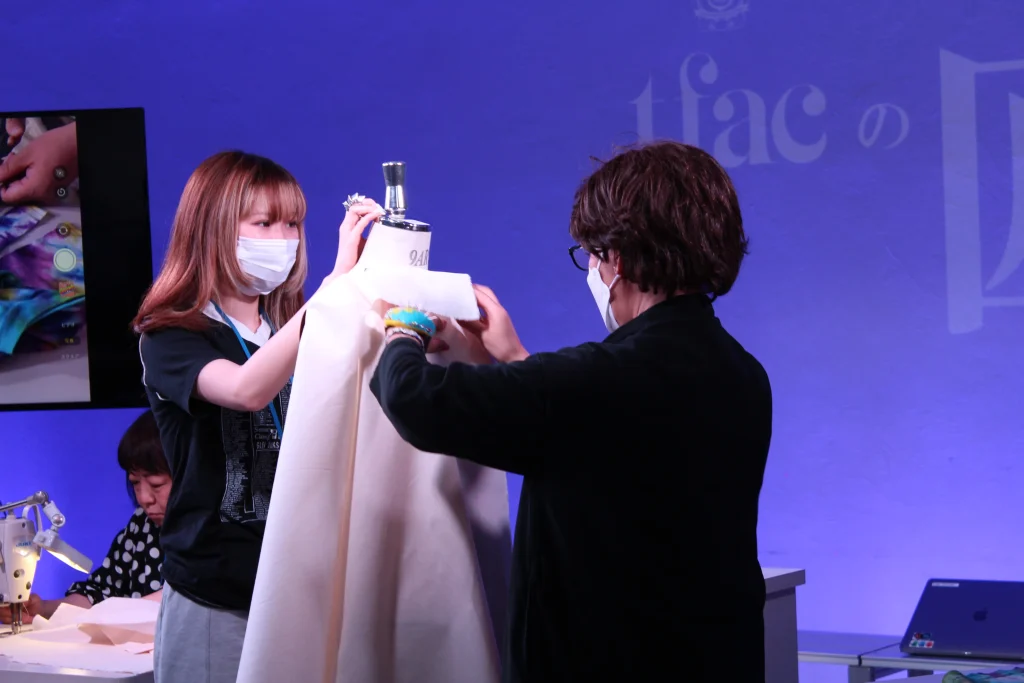 パタンナーコース担当Ribi先生はドレーピング(立体裁断)を実演✂️