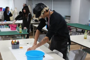 パタンナーコース担当Ribi先生は、ドレーピング(立体裁断)を実演✂️