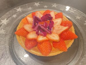 イチゴを切っておしゃれにお花と一緒に飾り付けしてくれたんです!