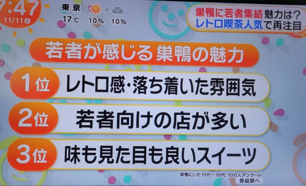 先日、朝の情報番組で、最近の若者に巣鴨が人気だと特集されていました📺