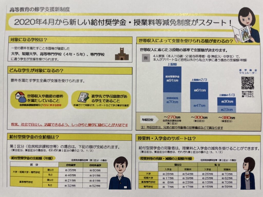 高等教育の修学支援制度とは、給付奨学金と授業料減免の両方が利用できるシステムです。
