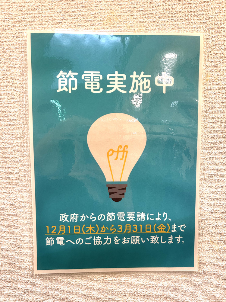 皆で節電に取り組んでいます!最後に教室を出るときは、電気や暖房を消す様にお願いしますm(__)m