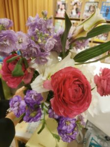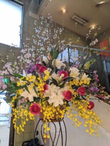ちなみにこの立派なお花、役目を終えた後は職員がそれぞれ好きな花を持ち帰るという