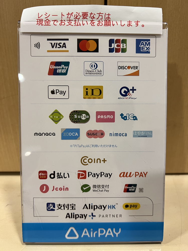レシートが欲しい場合は現金でお支払いください!