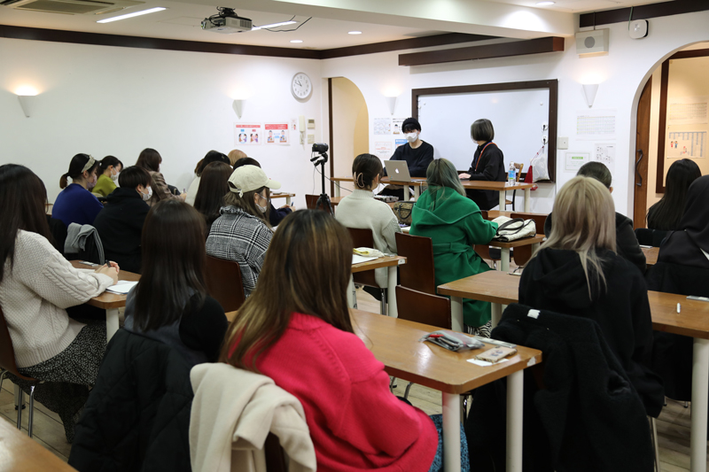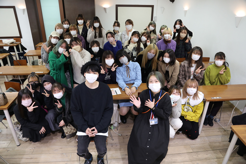 就職ガイダンスの授業にて、アイドルグループのコンサートやイベント、舞台の衣装デザイン&スタイリングを中心に活躍中の本学園の卒業生・米山裕也さんにゲスト講師として来校いただきました。